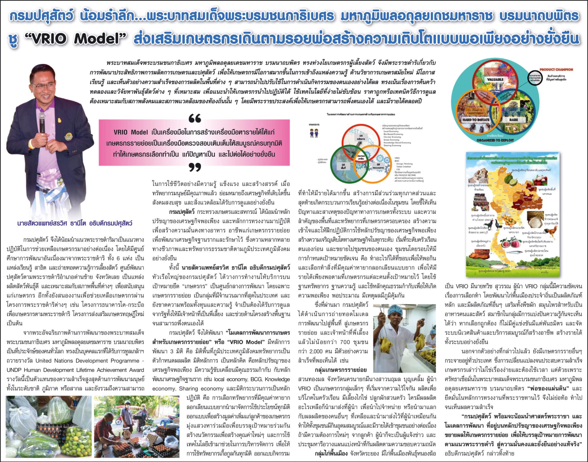 กรมปศุสัตว์ น้อมรำลึกพระบาทสมเด็จพระบรมชนกาธิเบศร มหาภูมิพลอดุลยเดชมหาราช บรมนาถบพิตร ชู"VRIO Mode1" ส่งเสริมเกษตรกรเดินตามรอยพ่อสร้างความเติบโตแบบพอเพียงอย่างยั่งยืน